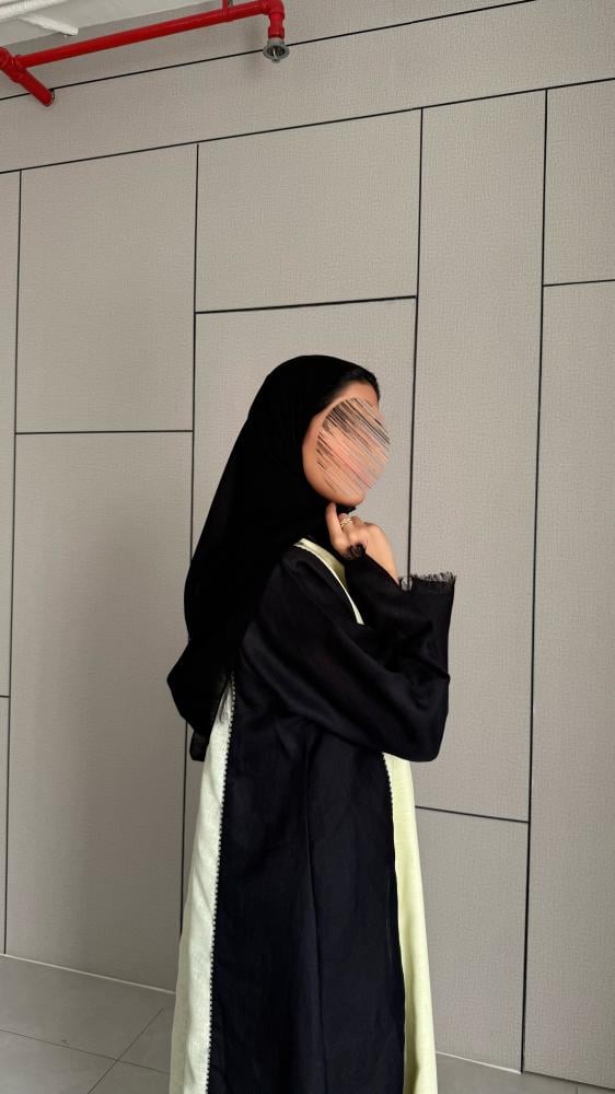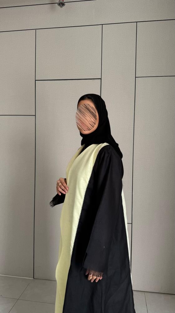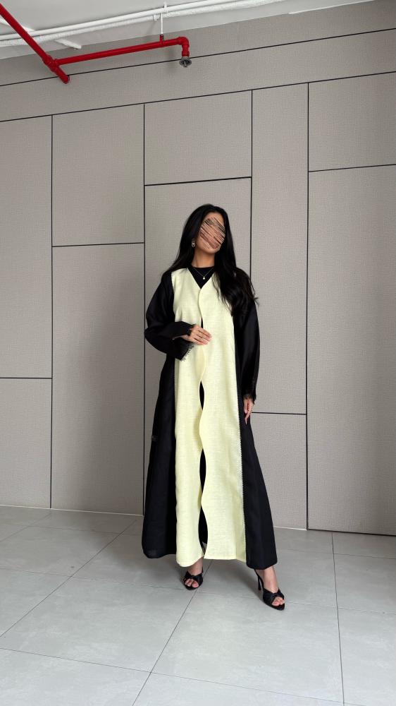 - عباية من قماش اللينن الهندي باللون الأسود مع اللون الأصفر مع تطريز خاص